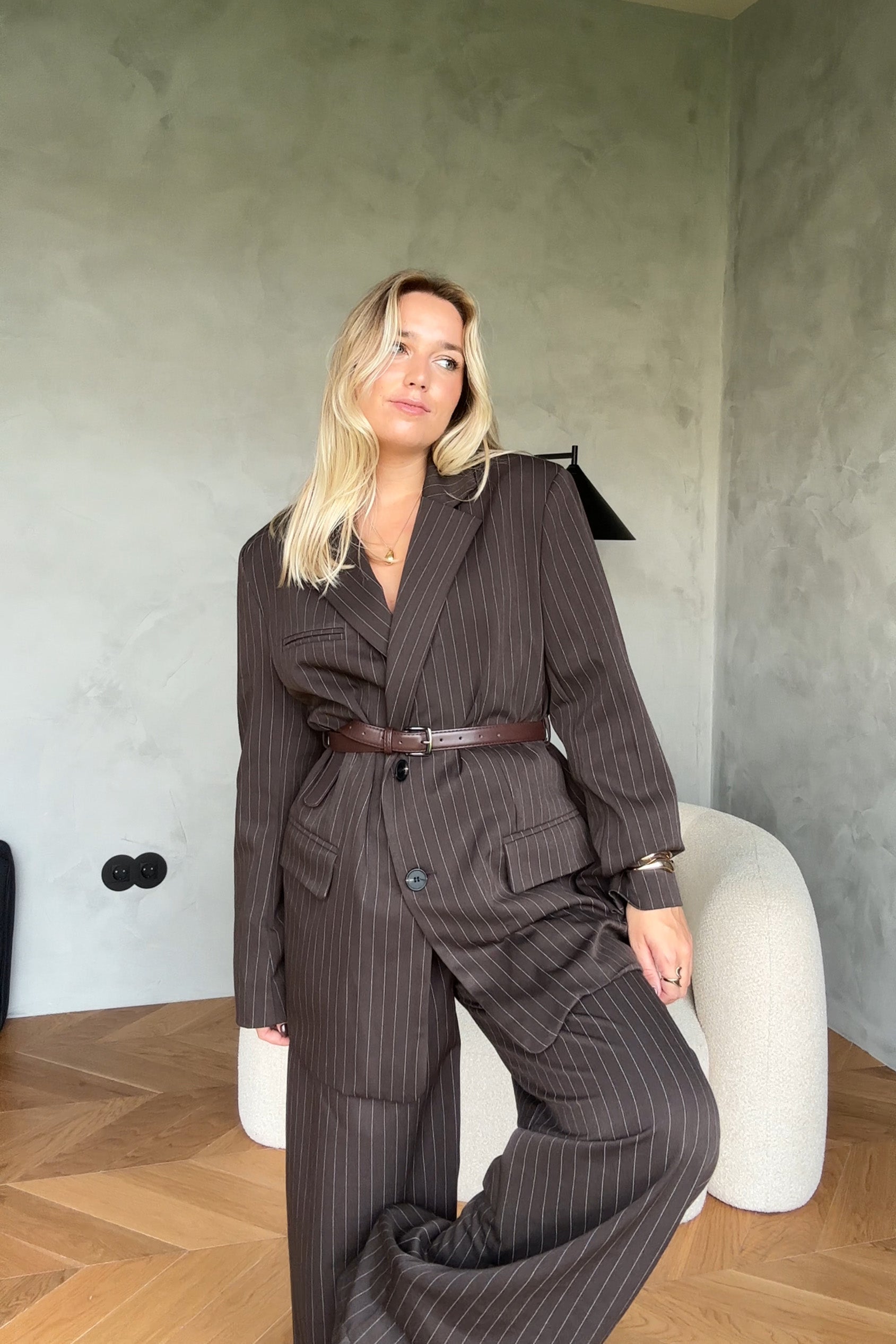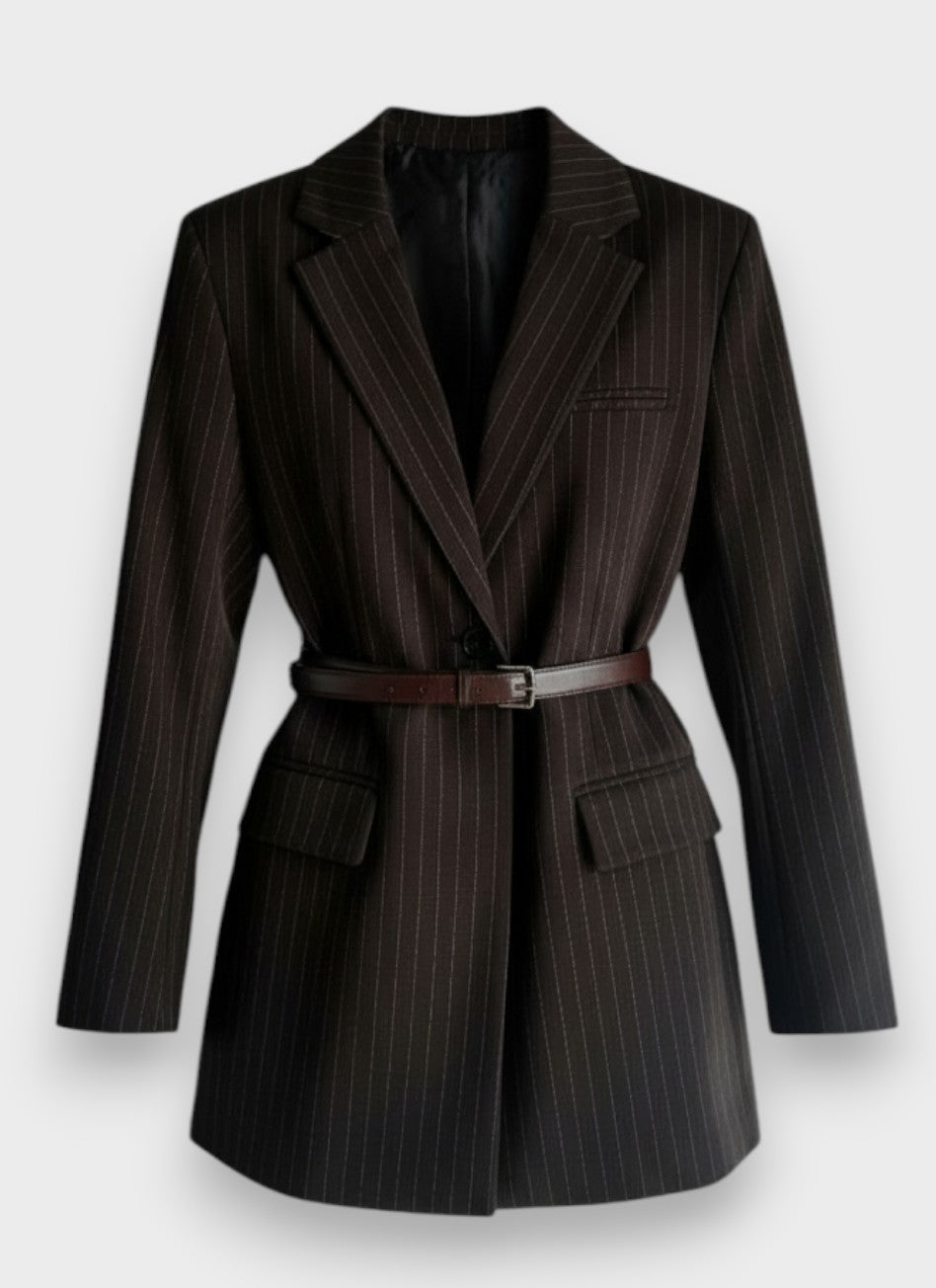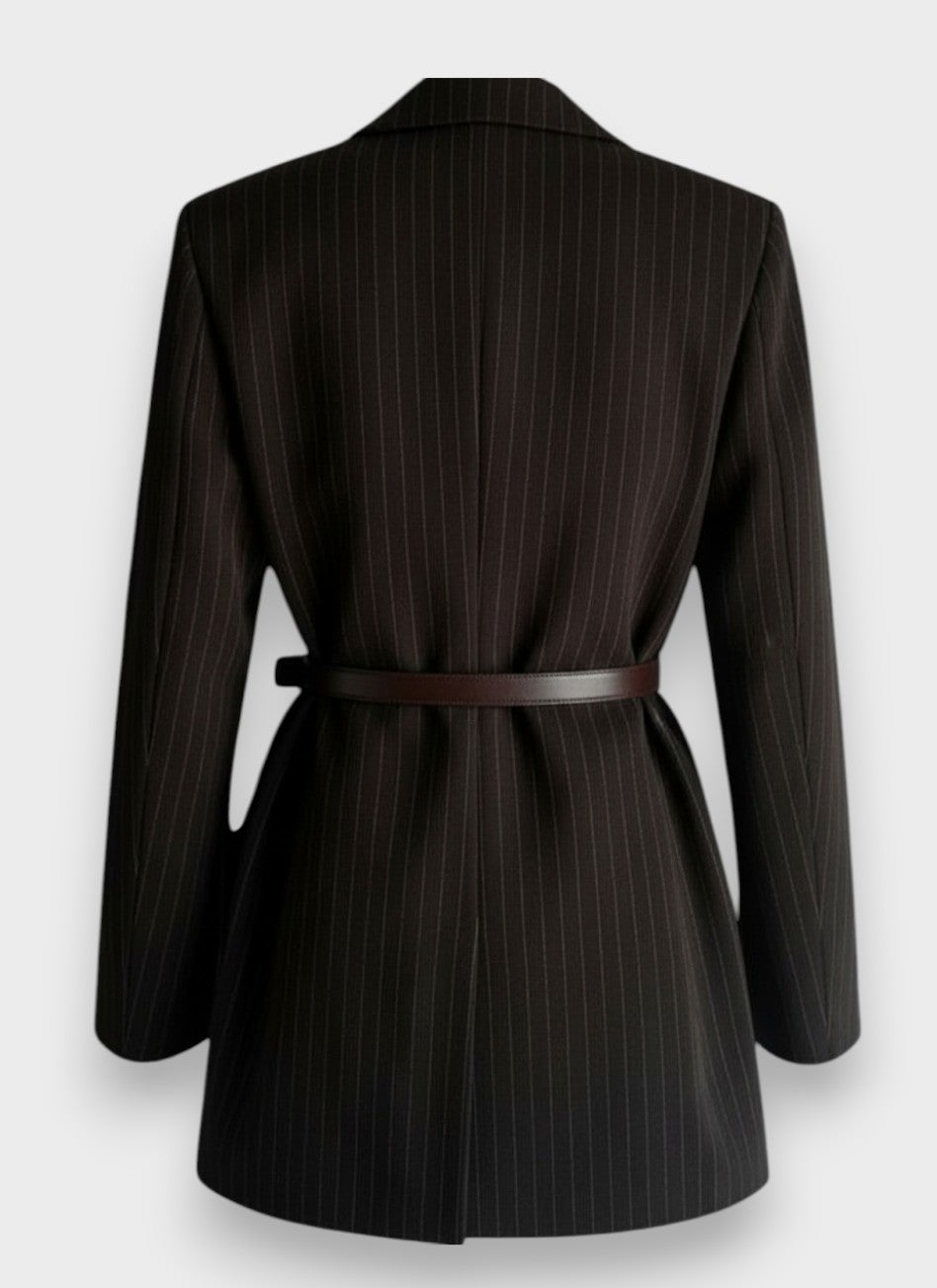 Blazer oversized com gola de lapela e manga comprida. Forro no interior. Bolsos com aba à frente. Bolso falso de chapa no canto superior. Fecho frontal com botões. Cinto na cintura com presilhas.