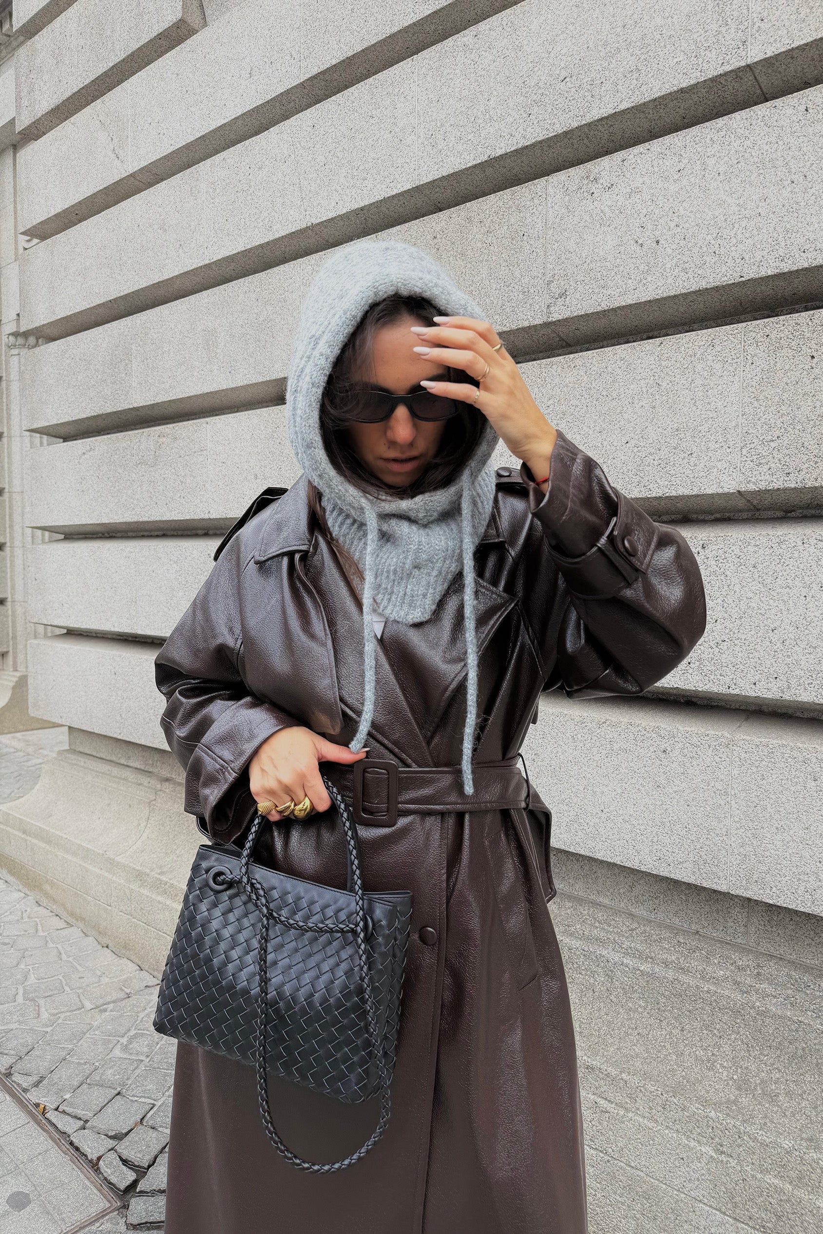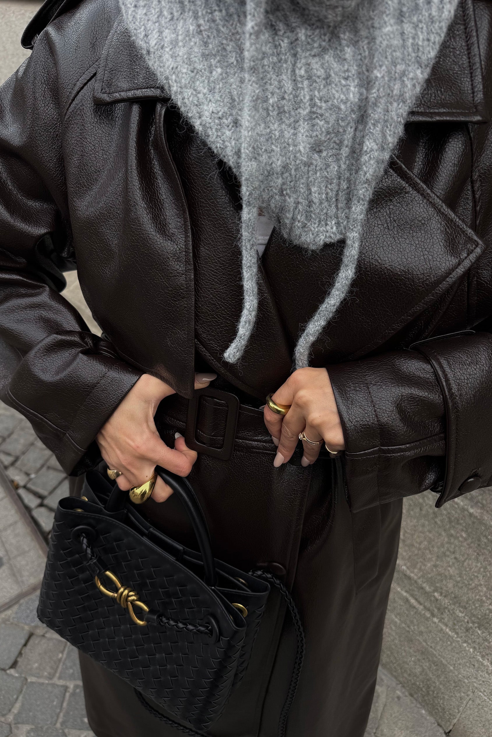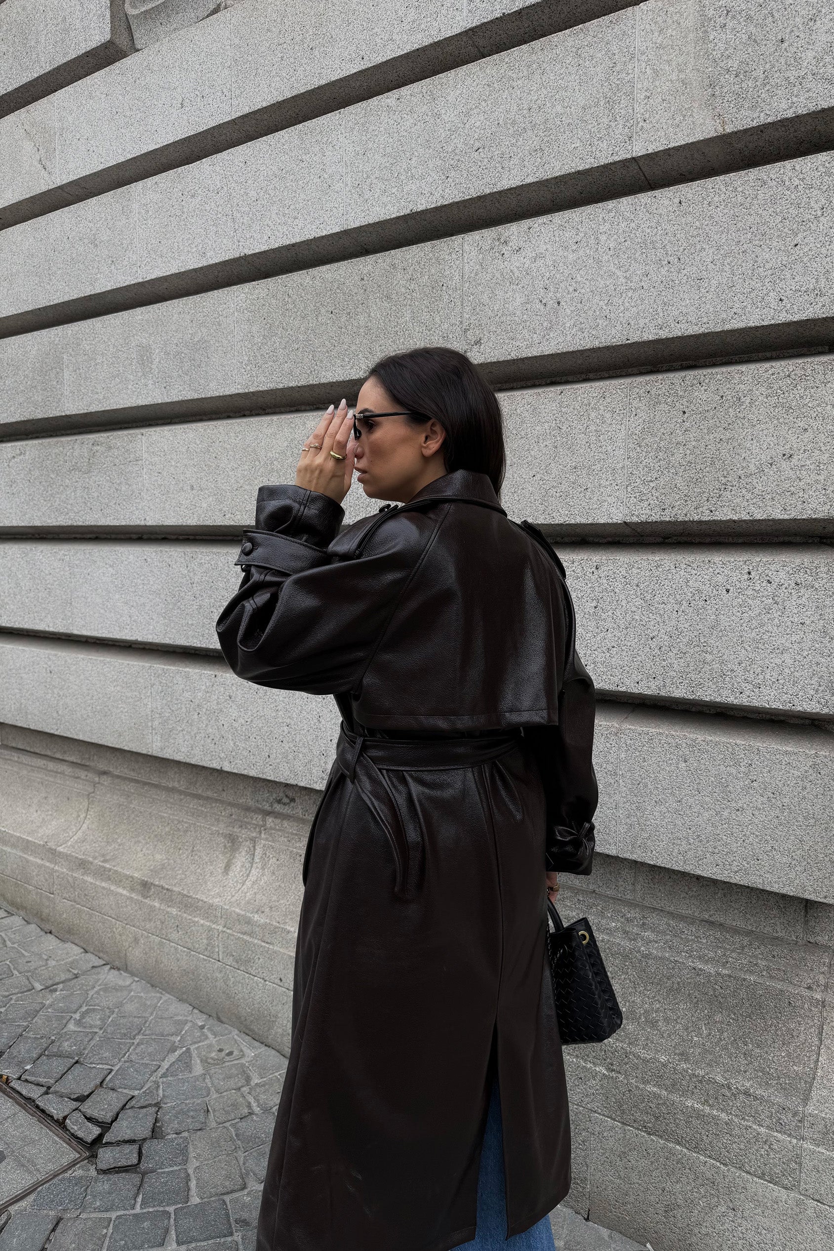TRENCH COM CINTO EFEITO PELE
